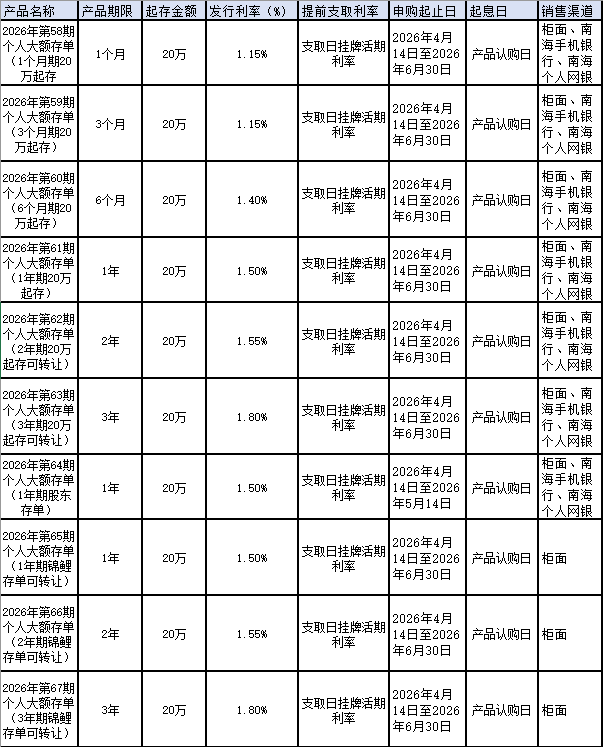 附件:南海农商银行2026年第58-67期个人大额存单产品说明书