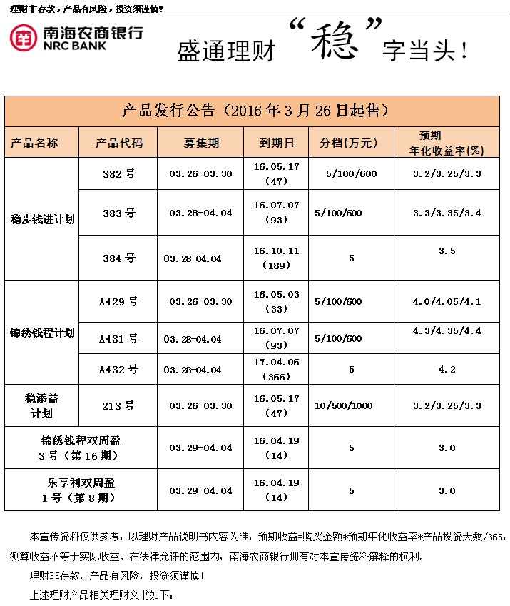 “盛通理财”锦绣钱程计划双周盈3号_第16周期_销售公告
