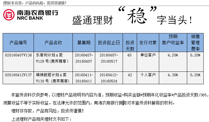 【发行公告】贵宾尊享产品发行公告(16.4.7-4.11)