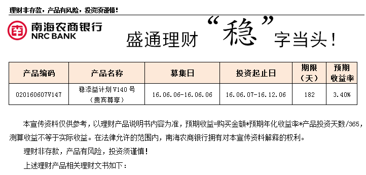 “盛通理财”稳添益计划V140号 (贵宾尊享)_风险揭示书及产品说明书