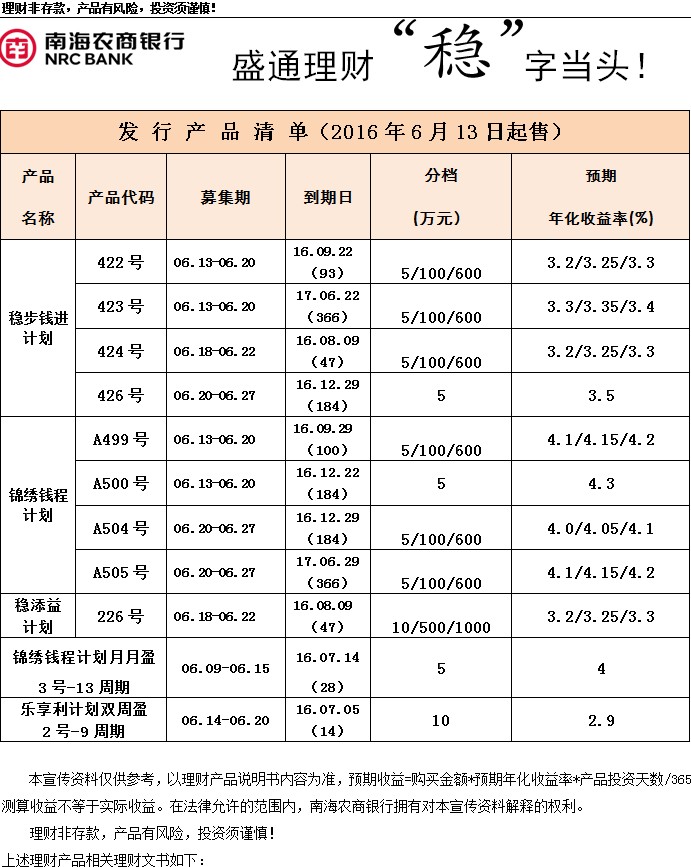 “盛通理财”锦绣钱程计划月月盈3号_第13周期_销售公告
