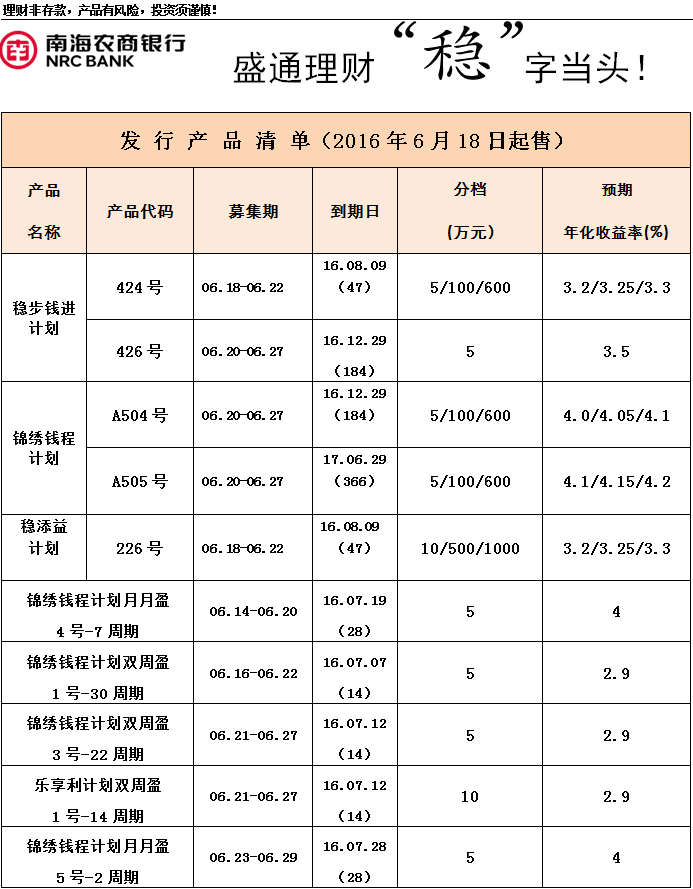 “盛通理财”锦绣钱程计划月月盈4号_第7周期_销售公告