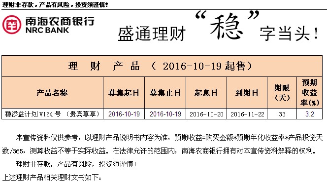 “盛通理财”稳添益计划V164号 (贵宾尊享)_风险揭示书及产品说明书