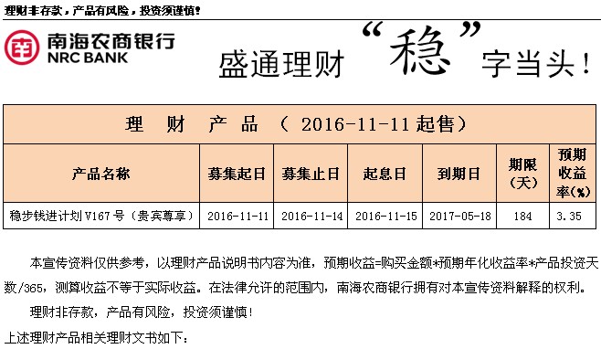 “盛通理财”稳步钱进计划V167号 (贵宾尊享)_风险揭示书及产品说明书