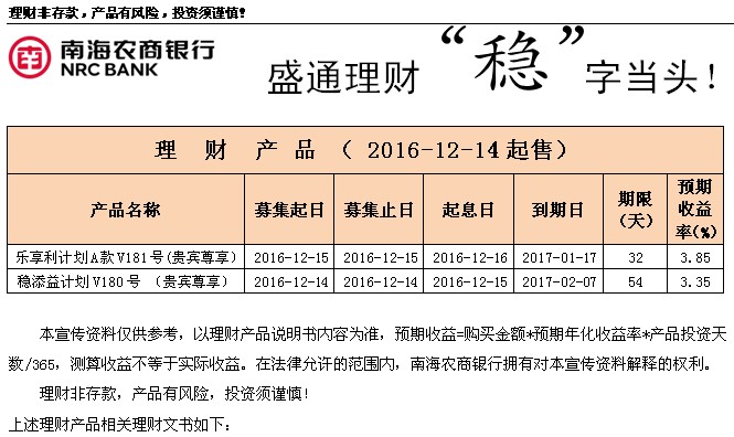 【发行公告】封闭式理财产品发行公告(12.14起售)